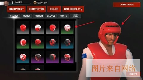 1、打开跆拳道大奖赛游戏,进入角色界面,选择拳击手的外观和运动装备,点击右下角【ACCEPT】。