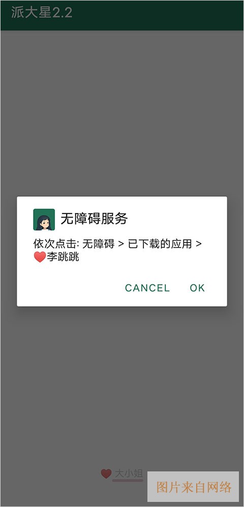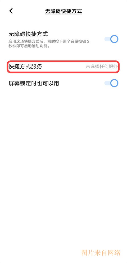 2、点击“OK”后,选择无障碍快捷方式,在“快捷方式服务”内选择“李跳跳”点击开启-确定,即可设置跳广告。
