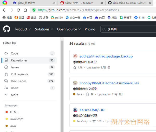 用户可以前往github上来获取最新代码,当然这个github网站有时候在国内是打不开的,而国内的最大的开源代码库gitee是没有存放这些规则代码的,下图就是gitee中的搜索时找到到这些规则代码,小伙伴们不用费时间在这里找了