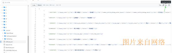 正如上图中所示,用户只要关心json格式文件就可以,而三个json文件格式中只需要用户关心所有规则代码文件即可。然后点击右侧的下载文件,将文件下载即可