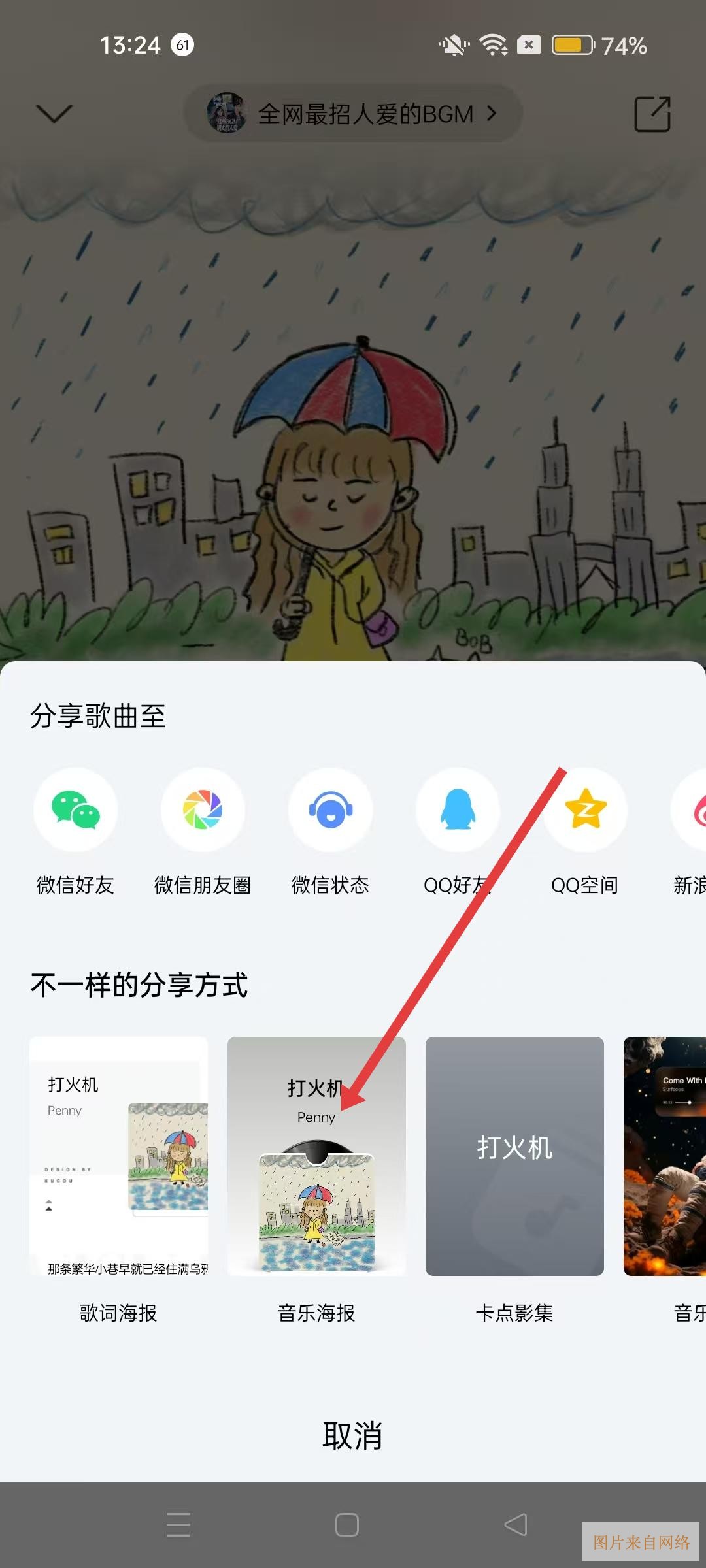 3、分享选项界面,选择音乐海报选项,进入音乐海报制作界面。