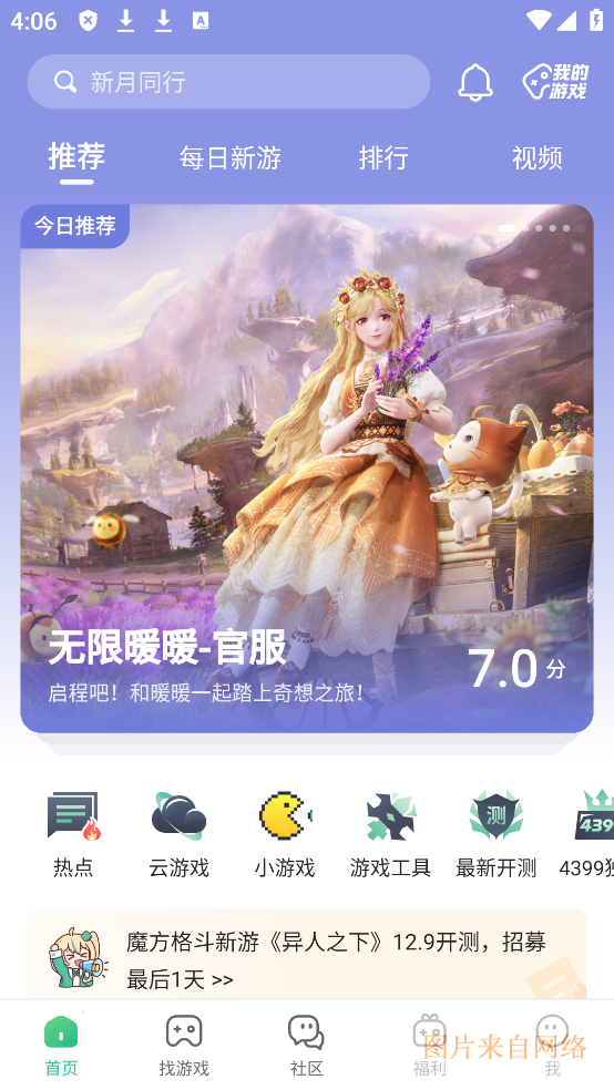4399游戏盒是一款免费手游盒子,主要为用户提供游戏相关的服务,不仅包括提供游戏测评、攻略、资讯等信息,还有丰富的热门精品游戏。游戏更新也非常及时,每天都会实时推荐一些热门的游戏,各种好玩不累花钱少的手机游戏都可以看到,你可以根据自己爱好来关注相关栏目,还有多种游戏排行榜让你找到可玩性高的游戏,同时还聚合海量游戏资讯,帮助玩家从游戏小白快速成长为资深大神。