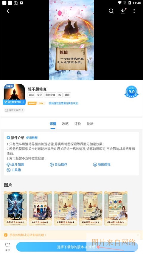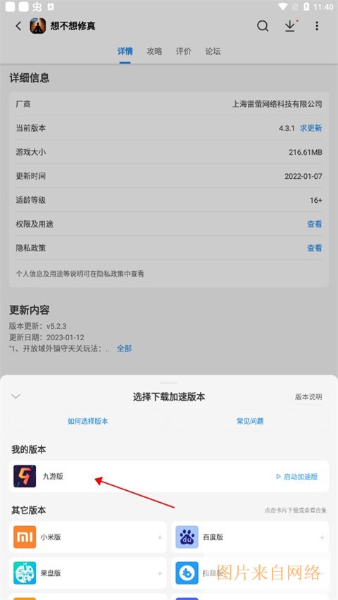 1、首先进入光环助手加速器官方版,这里仅限加速版的游戏可使用,选择你想玩的游戏,这里以《想不想修真》为主,点击下方选择你的版本;
