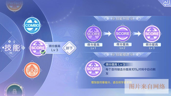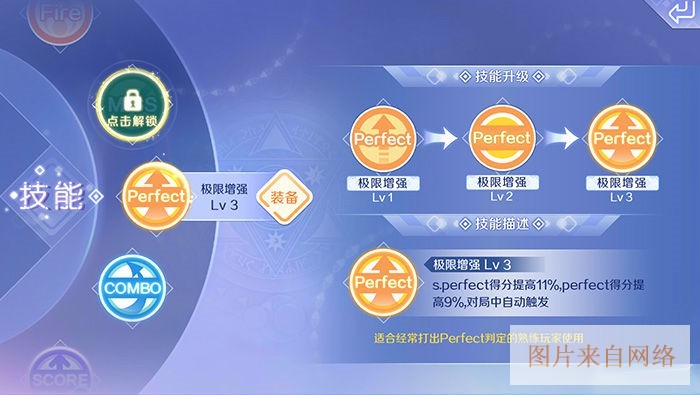提升S.PERFECT音符节奏和PERFECT音符节奏的得分加成,比较适合节奏感好的玩家使用,尽量多的按出完美音符节奏,可以帮助我们获得更高的得分。这个技能对玩家的操作要求更高一些,对于技能流的玩家来说,这个技能更加实用。