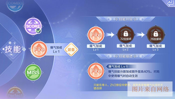 只可以在单人、2V2排位赛中使用,使用后可以大幅度提升额外分数加成。这个技能需要玩家对歌曲音符十分熟悉,选择歌曲音符密集部分,可以提升这个技能的得分。另外需要注意这是一个主动技能,需要玩家主动按键开启,在后续高难度歌曲中,在歌曲开头部分、或者Show Time后的空挡部分开启,可以降低按键出现的音符MISS。