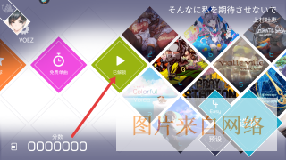 接下来,萌新可以选择「兰空」主题曲《Colorful Voice》,了解「兰空」世界。点击「游戏」进入选歌页面,在右侧选择「A→Z」排序、「Easy」难度,点击《Colorful Voice》曲图即可。第一次获得「Full Combo」,接下来的曲目你一定也会充满信心吧~