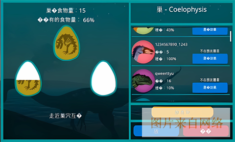 3、食物提取,如果恐龙是掠食者,那么你需要杀死其他玩家的恐龙才能得到自己的肉,如果你是草食动物,那么食物就更容易了,你需要特殊的蕨类植物,你可以得到足够的他们! 地图上任意湖泊、水库都可以饮用。