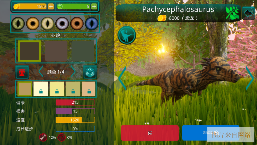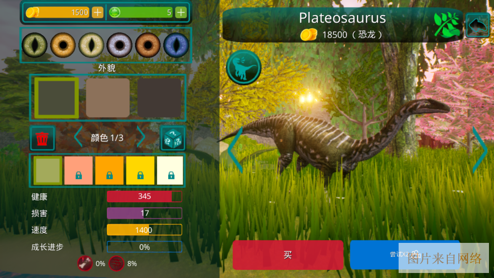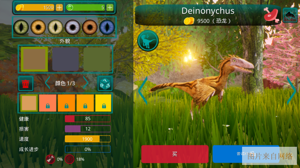 2、首先,玩家需要选择一种恐龙。 请记住 - 这是您个人的恐龙! 在恐龙游戏中,不仅有肉食性恐龙和草食性恐龙,还有会飞的恐龙,例如翼手龙,玩家可以与自己物种的食肉动物联合成群,以抵抗其他物种,最重要的是,生存!
