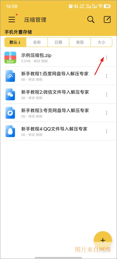 1、打开解压专家官方版,找到要解压的压缩包,点击右侧三个点;