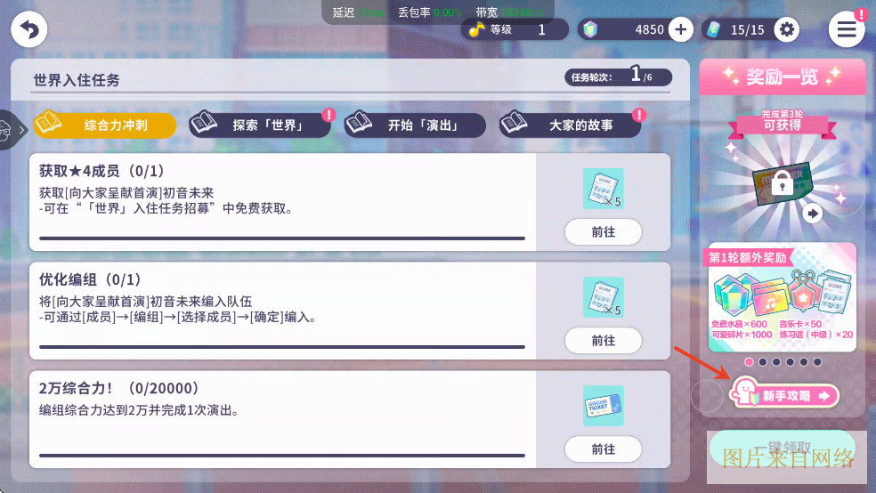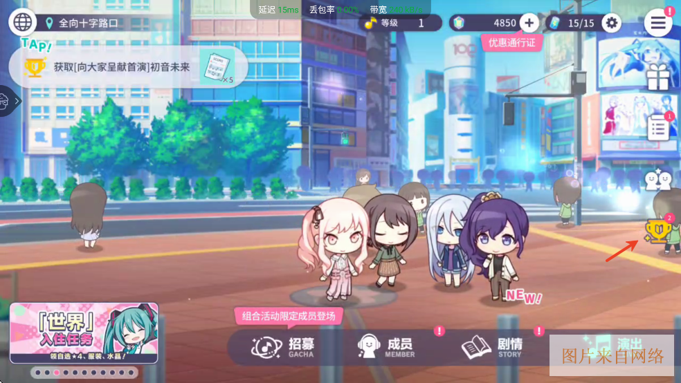 2、“编组界面”以及“单人演出开始界面”中新增“牵绊等级”按键,可以查看编组成员的牵绊等级了;
