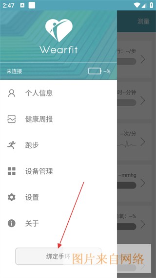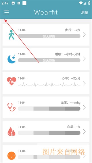 1、打开Wearfit APP,点击左上角三条横线的菜单图标。