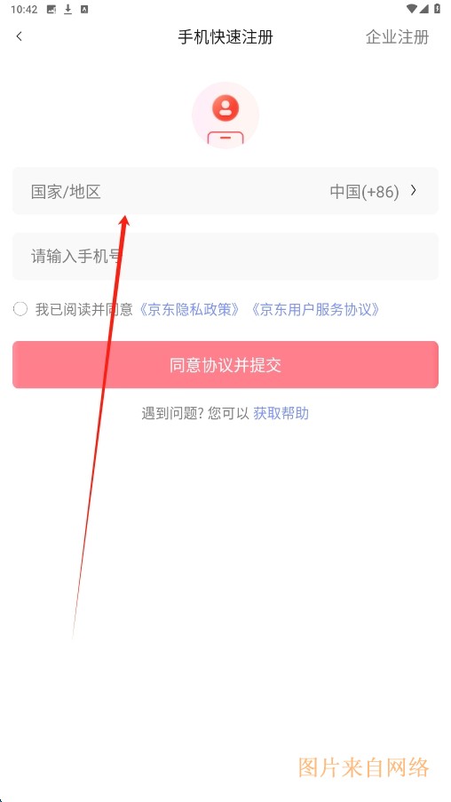 3、进入手机快速注册页,确认国家/地区为中国(+86),随后在下方输入框准备填写手机号码,推进注册步骤。