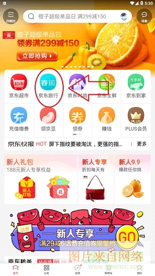 二、在京东商城首页直接点击“”京东旅行“”,如下图: