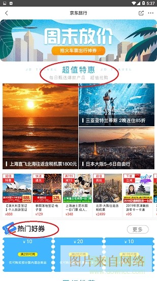 三、进来之后就有超值特惠旅行服务任你挑选,还有热门优惠券可以领取哦!