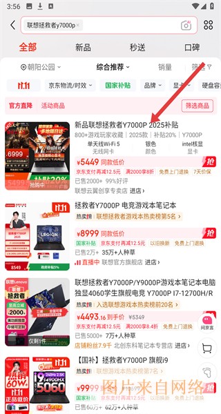 3、在搜索结果页点击“新品联想拯救者Y7000P2025补贴”商品,进入详情页。