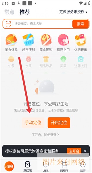 2、在进入到首页中时,可以点击手动定位按钮,进行定位城市。