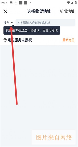 3、在进入到现在收货地址页面中,可以点击左侧城市选项进行手动修改定位。