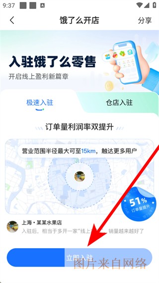 3、选择门店类型后,点击立即入驻,进入入驻信息填写环节。