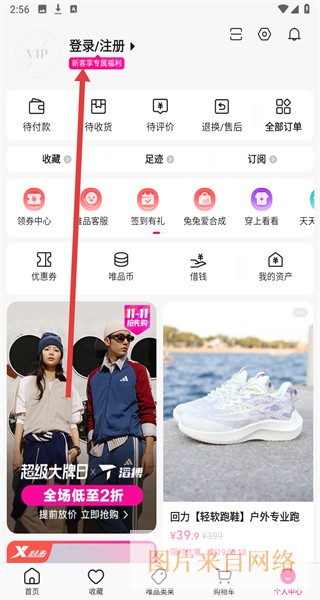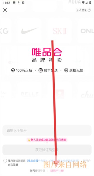 首先下载唯品会手机APP,安装完毕后,点击安装好的唯品会手机APP,会出现注册登陆页面,申请好账户,然后登陆唯品会手机APP。
