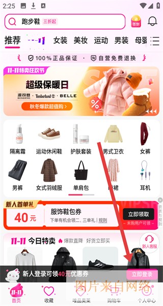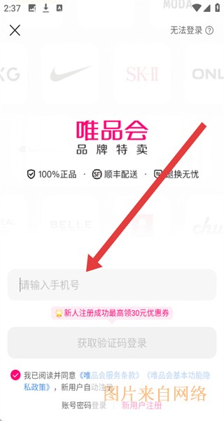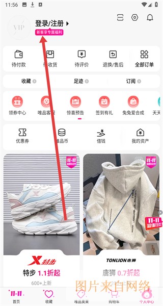 2、在唯品会APP首页点击“立即登录”,进入登录页面。