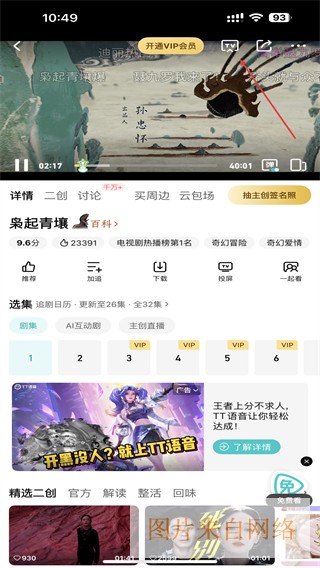 3、进入播放的页面内,点击画面右上方TV的图标。
