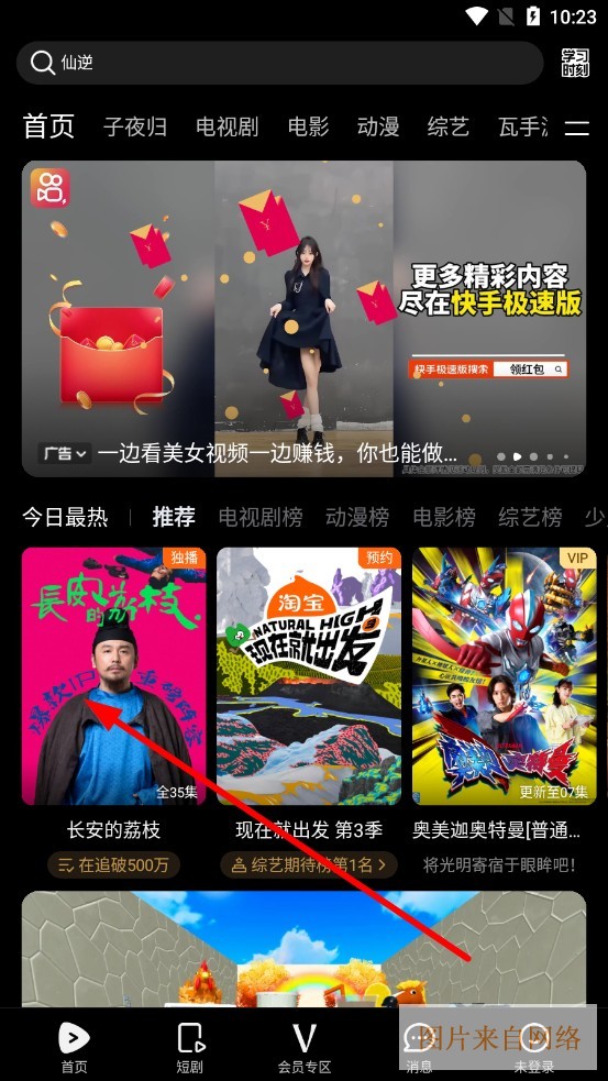 1、打开视频应用,在首页的今日最热等推荐板块中,找到想要下载的电视剧,点击剧集封面进入播放详情页。
