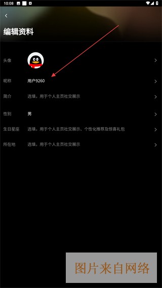 4、进入编辑资料的页面内,再次点击昵称的区域位置。