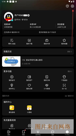 2、进入个人中心的界面内,点击右上角设置的功能按钮。