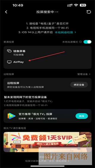 4、在搜索设备的页面内,选择并点击设备即可投屏成功。