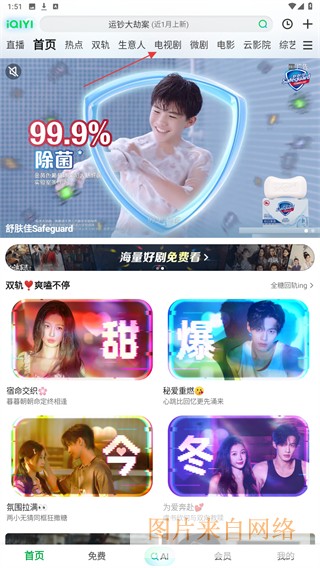 1、打开爱奇艺APP,进入首页点击电视剧的标签。