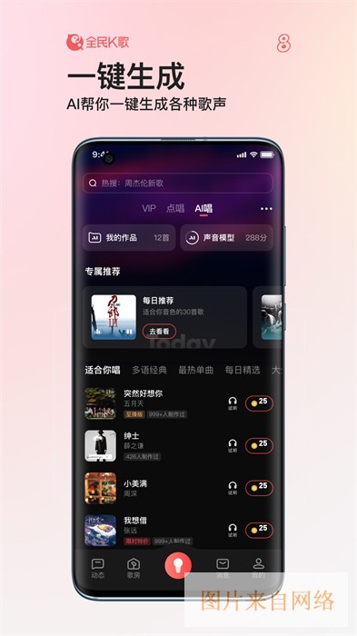 海量高品质伴奏及原唱音频给你最好的K歌体验。