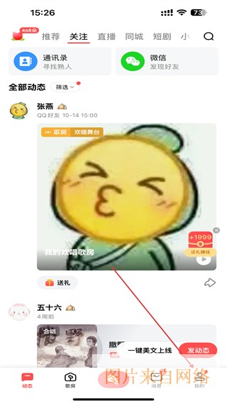1、打开全名k歌的应用,点击首页右下角我的图标。
