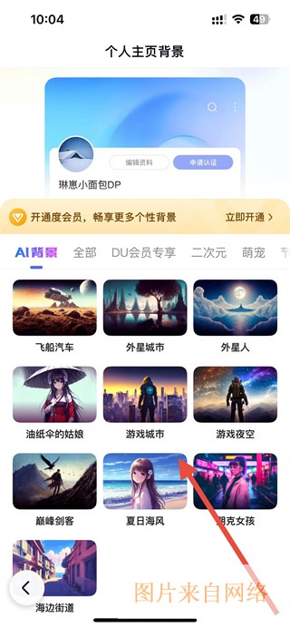 4、在个人主页背景界面,选择喜欢的背景样式点击即可完成更换。