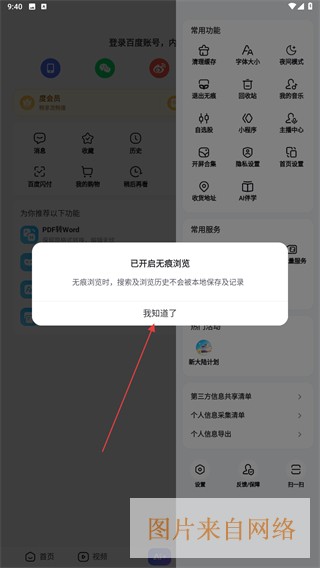 4、点击后,会直接开启无痕浏览,再次点击我知道了即可。