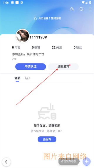 2、在个人主页点击编辑资料按钮,进入编辑个人资料页面。