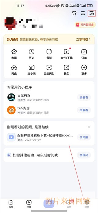 1、打开百度APP,进入到首页内点击右下角我的图标。