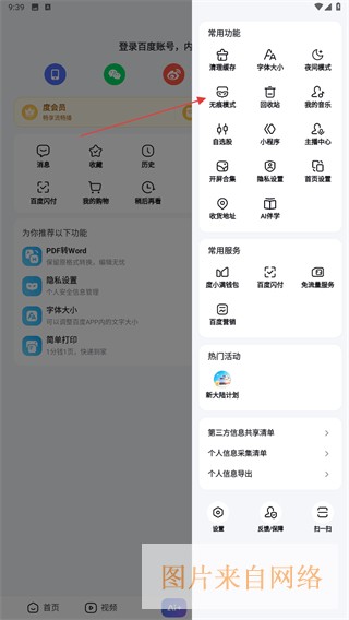3、在右侧弹出的菜单栏中,找到并点击无痕模式的功能按钮。