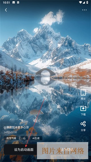 4、在壁纸详情界面找到设为启动画面按钮,点击该按钮即可完成启动画面设置。