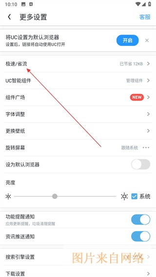 3、在设置页面找到极速/省流选项,点击进入极速/省流设置页面。