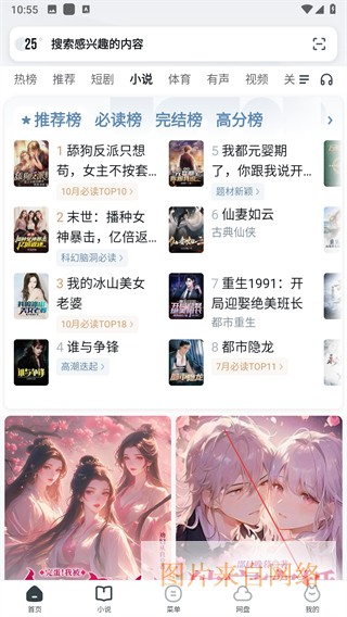 2、点击底部小说选项,进入小说页面,在顶部搜索框可输入书名或作者名查找小说,也能点击分类,根据不同分类浏览小说,还能查看推荐榜等榜单上的热门小说。
