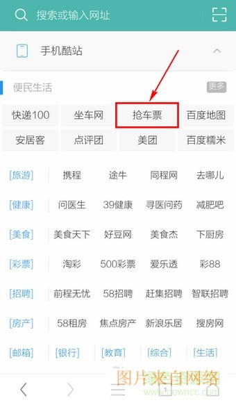 第一步:打开uc浏览器,从手机酷站里点“抢车票”,进入uc抢票专家,需要事先准备好铁道部12306网站的账户密码,然后登录。