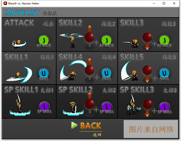 变身:J+K(三格气,限一护/鸣人/佐助/日番谷东狮郎/露琪亚/九尾妖狐/一护虚化状态/乌尔奇奥拉黑/仙人鸣人)其他角色请玩家摸索可否变身。