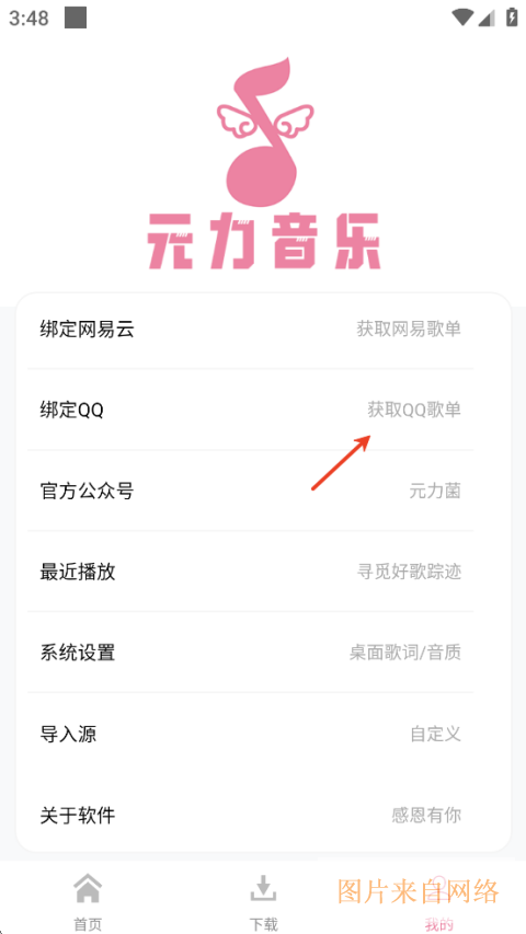 2、输入qq号进行绑定即可,然后在首页就可以点击qq音乐榜单了。