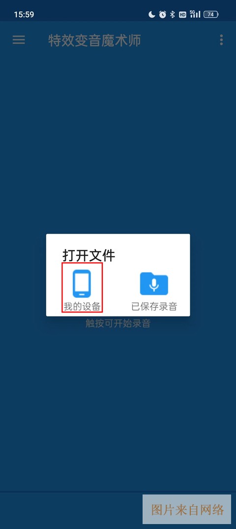 2、然后就会弹出两个选项,我的设备和已保存的录音,选择我的设备;