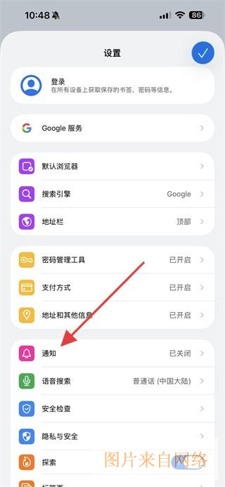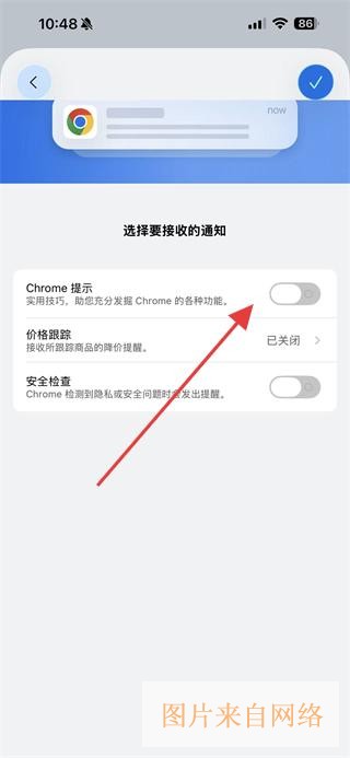 4、在通知设置页面,找到Chrome提示,将其开关开启,即可开启chrome浏览器的通知功能。