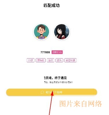 2、然后等待一会就会匹配成功,再点击下方的和TA打个招呼。